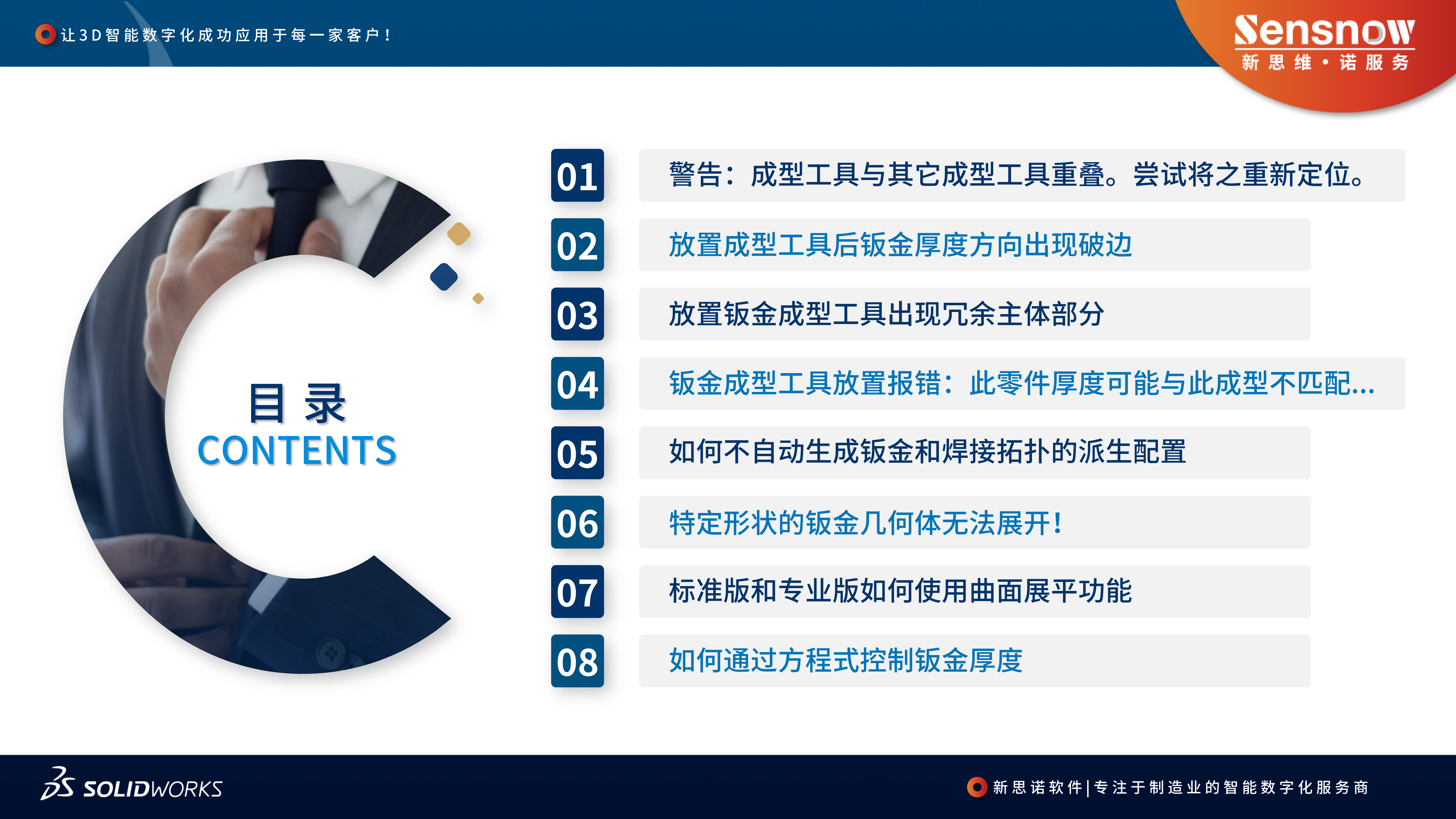 在日常使用SOLIDWORKS进行钣金设计时,你是否常被一些突如其来的报错或拓扑问题困扰?例如成型工具重叠导致警告频发、钣金展开失败、厚度方向出现破边等。这些看似细节的问题,实则直接影响设计效率与模型精度。新思诺聚焦近期用户反馈集中的八大钣金拓扑热点——从成型工具定位冲突、厚度与曲率半径匹配逻辑,到派生配置冗余控制、特殊几何展开限制等,深入解析其成因并提供解决思路,助你避开设计陷阱,提升钣金建模的流畅性与可靠性。